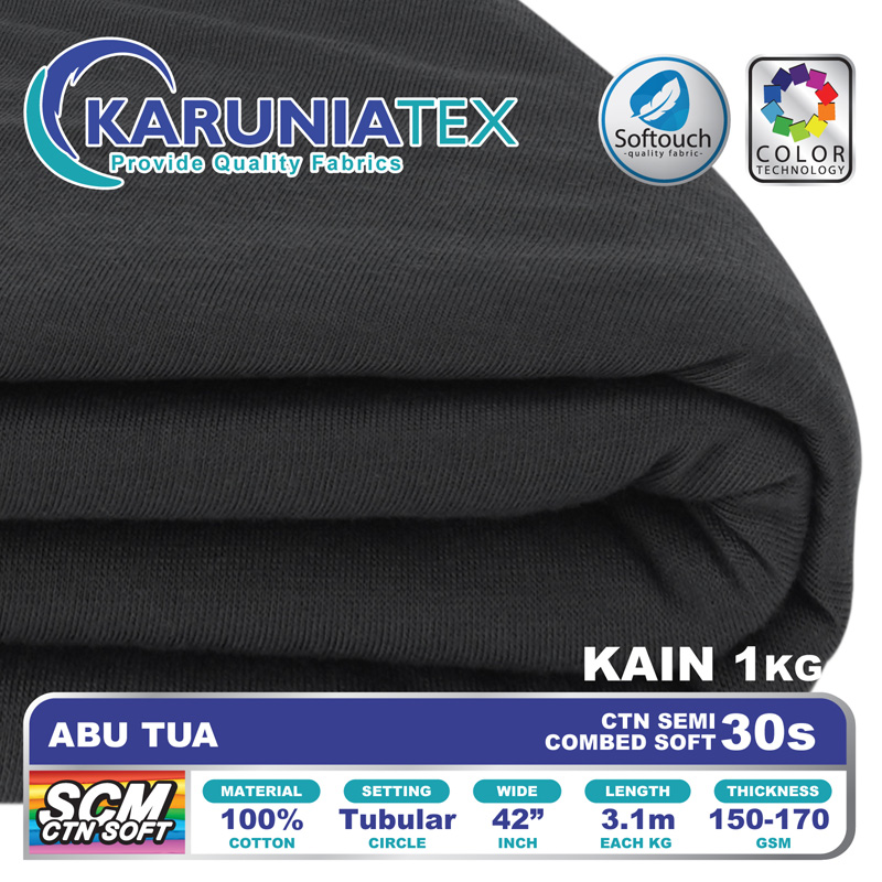 Bahan Kaos Cotton Semi Combed merupakan kain kaos dengan komposisi 100% Cotton Premium. Melalui proses pembakaran (singeing) untuk membuang bulu-bulu halus yang terdapat pada permukaan kain yang akan membuat kain yang dihasilkan lebih halus dan memiliki permukaan yang lebih rata. Proses pembuangan bulu dengan metode ini hanya dapat diaplikasikan pada jenis kain katun yang benar-benar berkualitas baik.