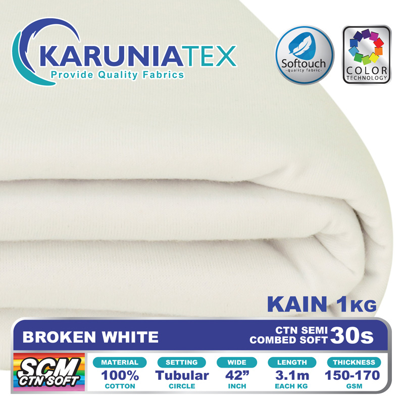 Bahan Kaos Cotton Semi Combed merupakan kain kaos dengan komposisi 100% Cotton Premium. Melalui proses pembakaran (singeing) untuk membuang bulu-bulu halus yang terdapat pada permukaan kain yang akan membuat kain yang dihasilkan lebih halus dan memiliki permukaan yang lebih rata. Proses pembuangan bulu dengan metode ini hanya dapat diaplikasikan pada jenis kain katun yang benar-benar berkualitas baik.