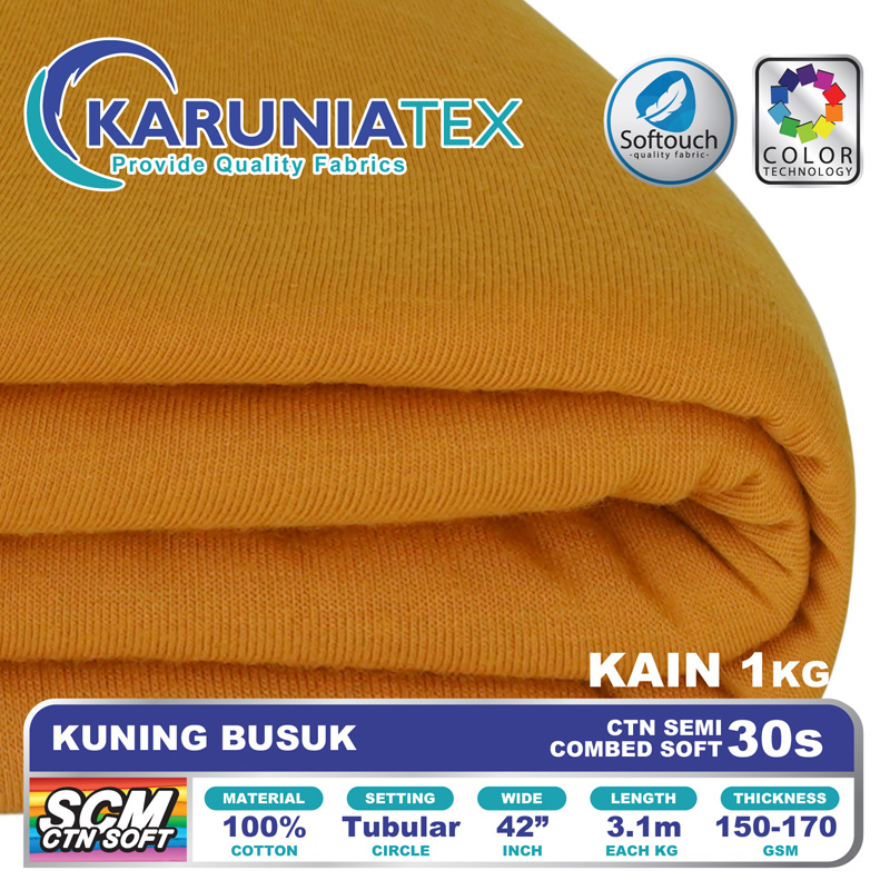 Bahan Kaos Cotton Semi Combed merupakan kain kaos dengan komposisi 100% Cotton Premium. Melalui proses pembakaran (singeing) untuk membuang bulu-bulu halus yang terdapat pada permukaan kain yang akan membuat kain yang dihasilkan lebih halus dan memiliki permukaan yang lebih rata. Proses pembuangan bulu dengan metode ini hanya dapat diaplikasikan pada jenis kain katun yang benar-benar berkualitas baik.