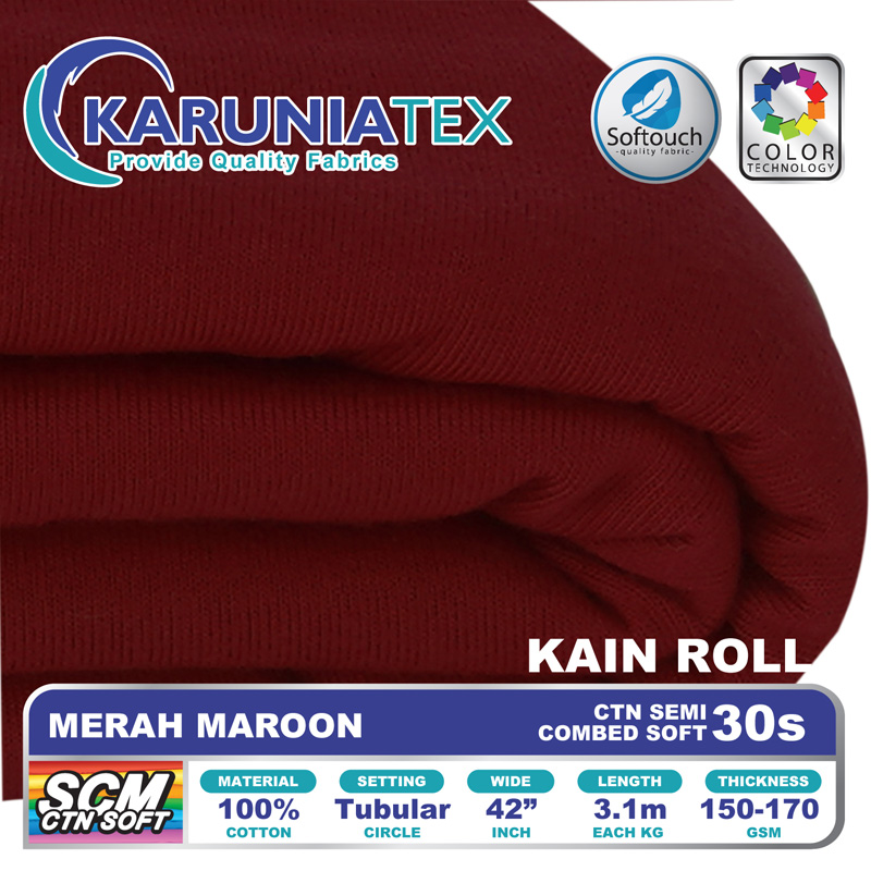 Bahan Kaos Cotton Semi Combed merupakan kain kaos dengan komposisi 100% Cotton Premium. Melalui proses pembakaran (singeing) untuk membuang bulu-bulu halus yang terdapat pada permukaan kain yang akan membuat kain yang dihasilkan lebih halus dan memiliki permukaan yang lebih rata. Proses pembuangan bulu dengan metode ini hanya dapat diaplikasikan pada jenis kain katun yang benar-benar berkualitas baik.