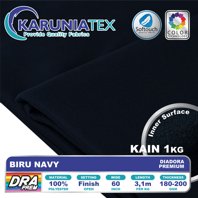 Kain Diadora Premium Karunia Textile memiliki kualitas tinggi, halus dan nyaman digunakan serta mampu menyerap cairan dengan baik. Bahan diadora ini biasanya digunakan untuk produksi sweater, jaket, celana olahraga, dan sejenisnya.