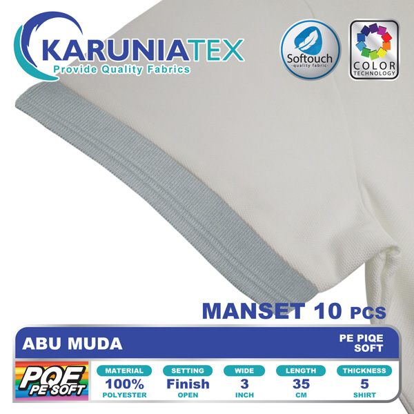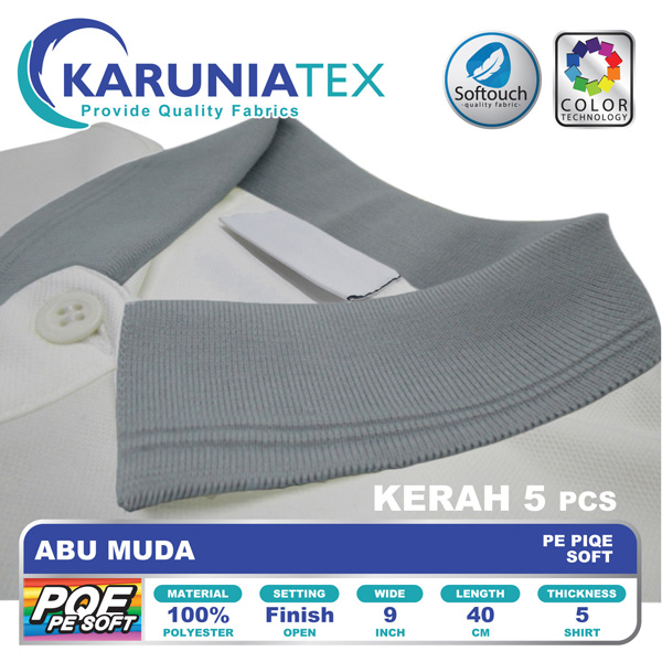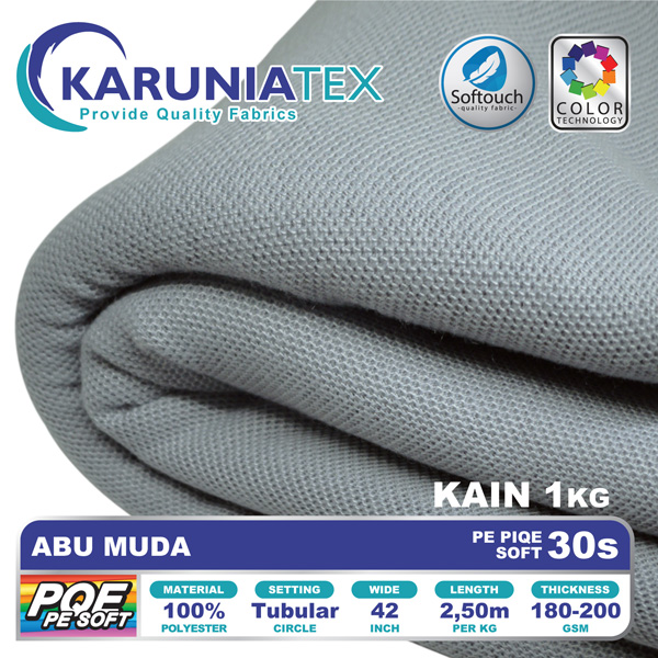 Jenis bahan kaos dengan tipe rajutan pique yang memiliki ciri khas berlubang-lubang pada kainnya. Pola rajutan PE Piqe Soft Karunia Textile berbentuk honeycomb atau segi enam kecil sehingga memberikan kenyamanan lebih saat dipakai.