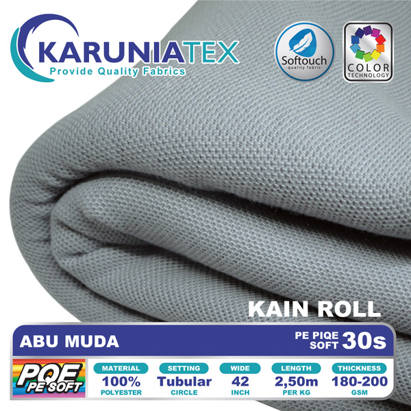 Komposisi 100% Polyester, PE Piqe Soft memiliki handfeel yang halus, lembut, warna yang cerah, pekat dan anti pudar.