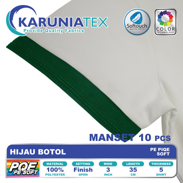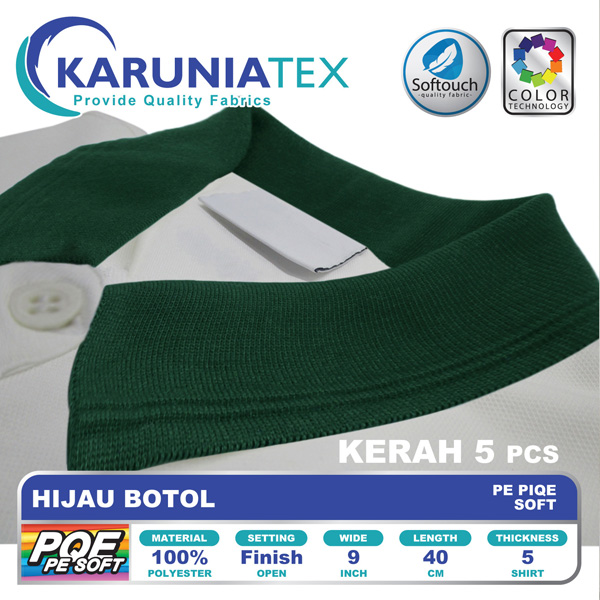 Jenis bahan kaos dengan tipe rajutan pique yang memiliki ciri khas berlubang-lubang pada kainnya. Pola rajutan PE Piqe Soft Karunia Textile berbentuk honeycomb atau segi enam kecil sehingga memberikan kenyamanan lebih saat dipakai.