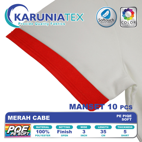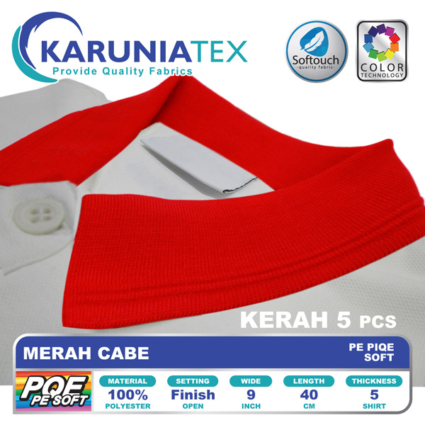 Jenis bahan kaos dengan tipe rajutan pique yang memiliki ciri khas berlubang-lubang pada kainnya. Pola rajutan PE Piqe Soft Karunia Textile berbentuk honeycomb atau segi enam kecil sehingga memberikan kenyamanan lebih saat dipakai.