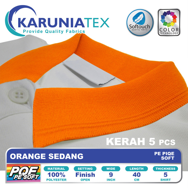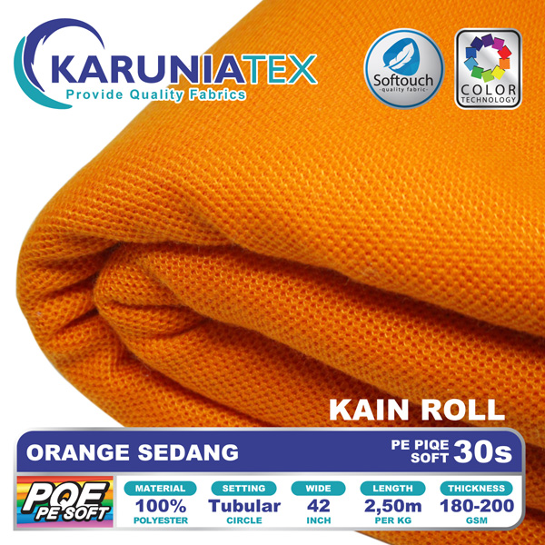Komposisi 100% Polyester, PE Piqe Soft memiliki handfeel yang halus, lembut, warna yang cerah, pekat dan anti pudar.