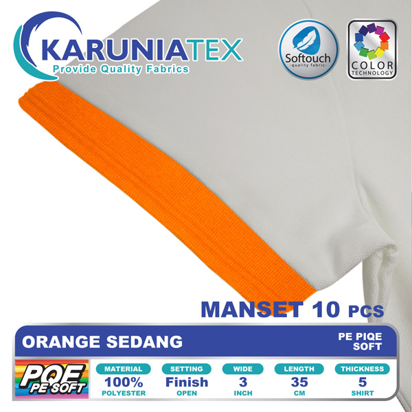 Jenis bahan kaos dengan tipe rajutan pique yang memiliki ciri khas berlubang-lubang pada kainnya. Pola rajutan PE Piqe Soft Karunia Textile berbentuk honeycomb atau segi enam kecil sehingga memberikan kenyamanan lebih saat dipakai.