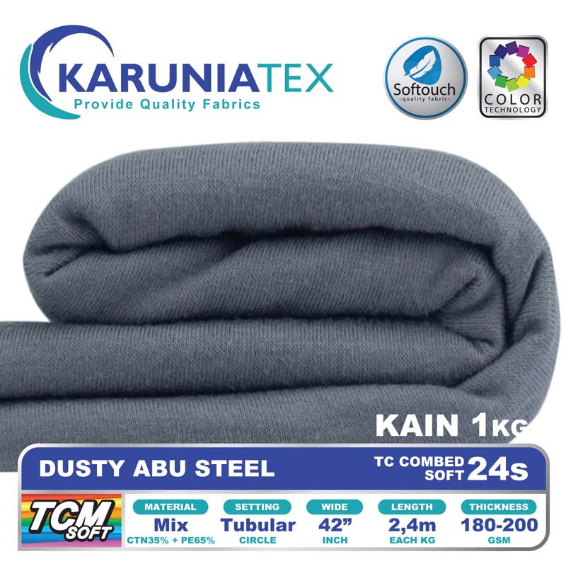 Bahan Kaos TC Combed Soft (TCM) merupakan kain dengan komposisi benang 65% polyester dan 35% cotton combed. Memiliki karakterisik handfeel yang halus, lembut saat bersentuhan dengan kulit dan mampu menyerap cairan dengan baik. Kualitas premium dengan harga terjangkau, warna tidak mudah pudar, nyaman digunakan, adem atau tidak membuat gerah pada kondisi cuaca normal.